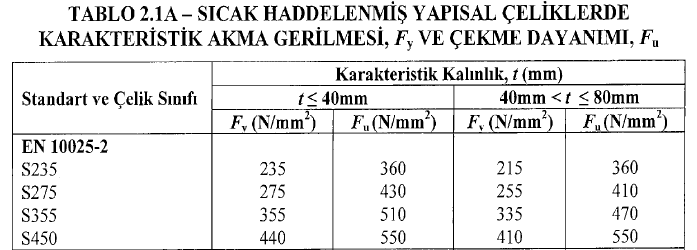 Fy = Yapısal çelik karakteristik akma gerilmesi