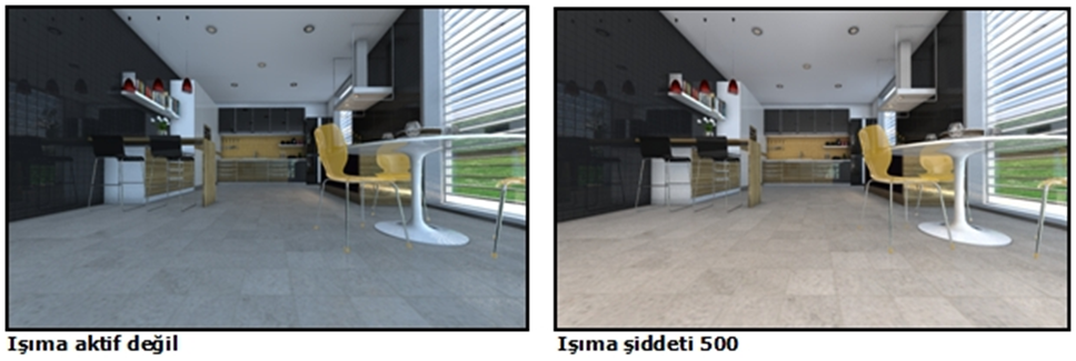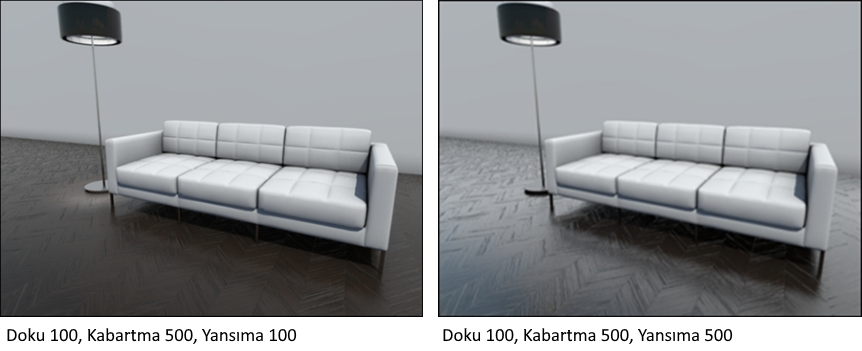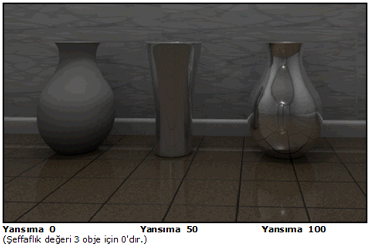 Değer ![]() 0-100 arası değer girilebilir. ![]() Cam, parke ve seramik gibi malzemelerin yansıma özellikleri vardır. |
