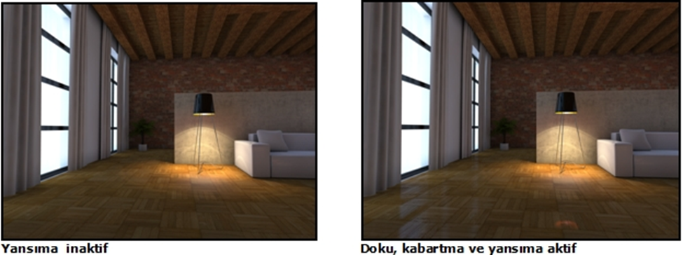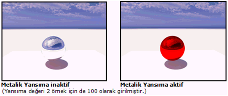 Yansıma ![]() Oluşturulan malzemeye yansıma verir. ![]() |