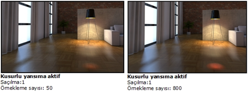 Örnekleme sayısı ![]() Yansımanın gerçekleşeceği yüzeylerdeki noktaların homojen olarak dağılmasını sağlar. ![]() |