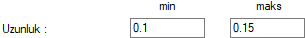 Uzunluk ![]() Minimum maksimum uzunluk rastlantısal bir aralıkta oluşturulur. En büyük ve en küçük değerler girilir. |
