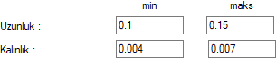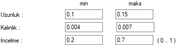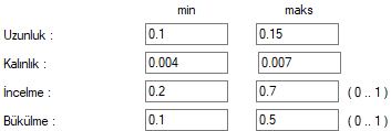 Kalınlık ![]() Minimum maksimum kalınlık rastlantısal bir aralıkta oluşturulur. En büyük ve en küçük değerler girilir. |