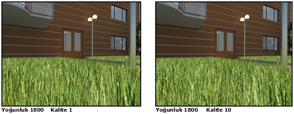 Kalite ![]() Kalite sayısı değeri olarak 1-10 arası değer girilebilir. Kalite sayısı arttıkça çimlerin bükülme detayları artar. ![]() |
