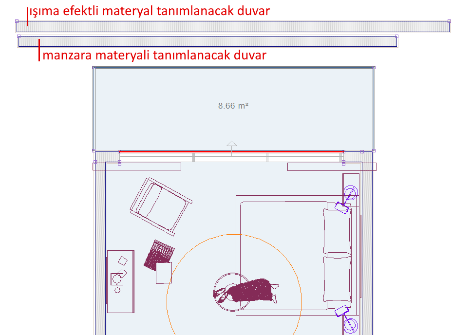 Materyalinizi oluşturduğunuz duvara tanımlayın.