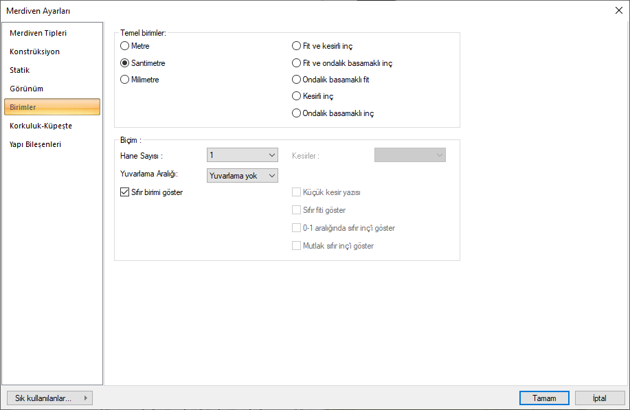 Sıfır birimi göster ![]() İşaretli değilse, soldaki sıfır ve noktayı ölçülendirmede göstermez. Örneğin 0.20 değerini, 20 olarak ölçülendirir. İşaretli ise 0.20 değeri 0.20 olarak ölçülendirilir. |