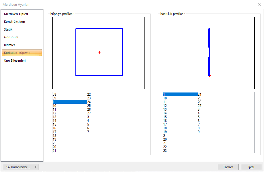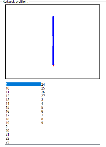 Korkuluk profilleri ![]() Korkuluk listesinden bir korkuluk farenin sol tuşu ile tıklanarak seçilir. Seçilen korkuluk görüntüsü, korkuluk ekranında görüntülenir. |