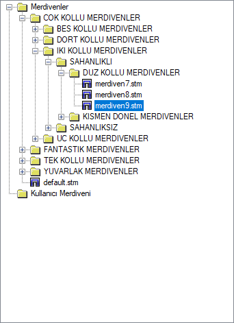 Tip listesi ![]() Merdivenler tiplerine göre klasörler altında düzenlenmiştir. Çizilecek merdiven bu klasörler altından seçilir. |