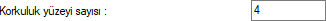 Korkuluk yüzeyi sayısı ![]() Korkuluk yüzey sayısı, korkuluk düşey yüzey sayısını (korkuluk kesitini) belirler. Korkuluk yüzey sayısı 4 olursa, korkuluk kesiti kare olur. |
