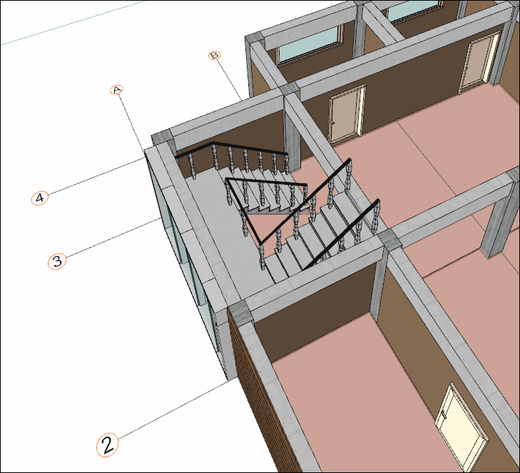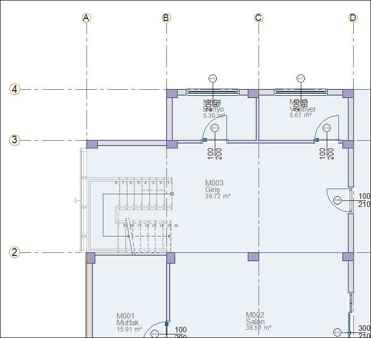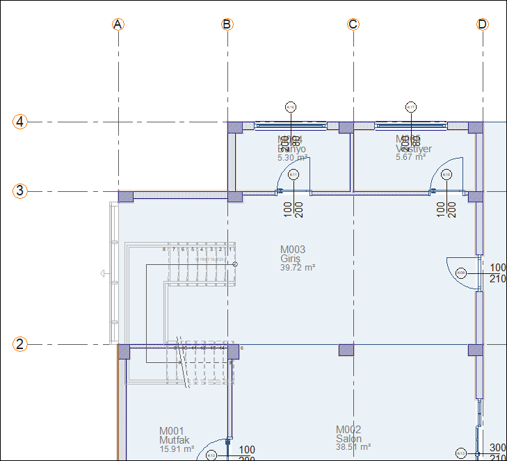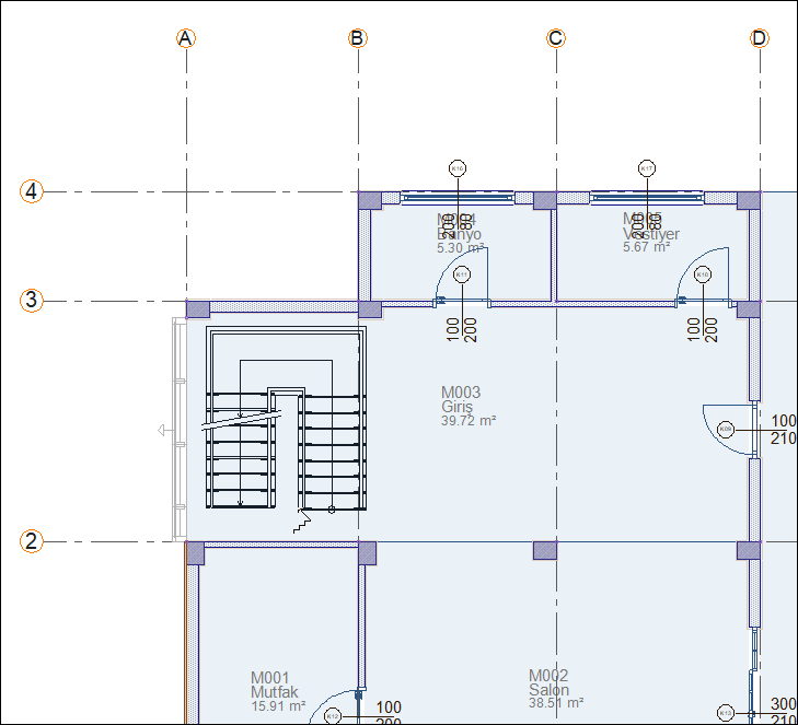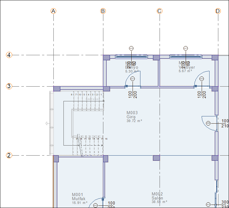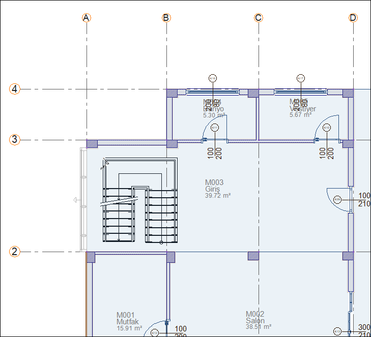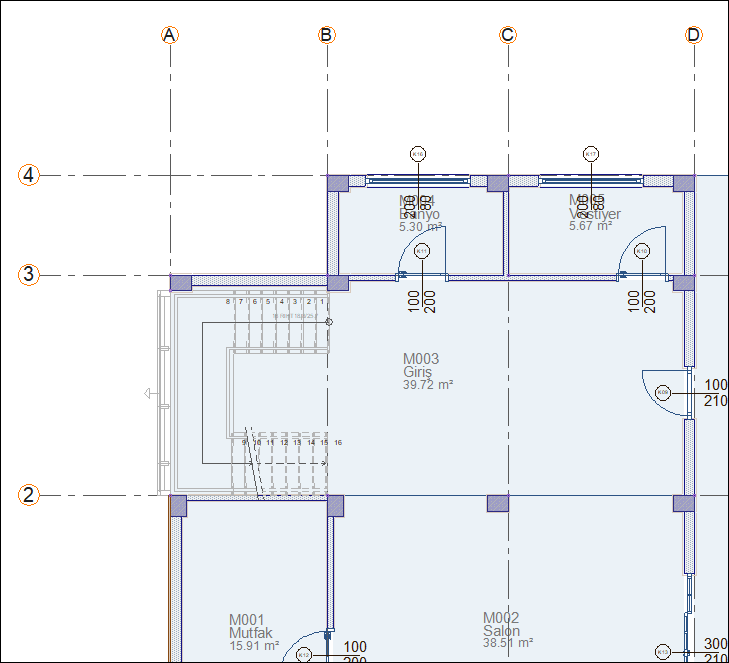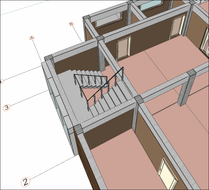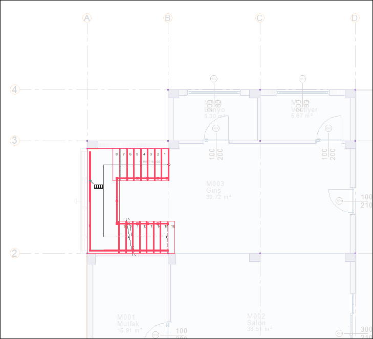 A-2 aks kesişimine tıklayın. A-3 kesişimine tıklayarak merdiveninizi yerleştirin. Klavyeden Esc tuşuna basıp komuttan çıkın.