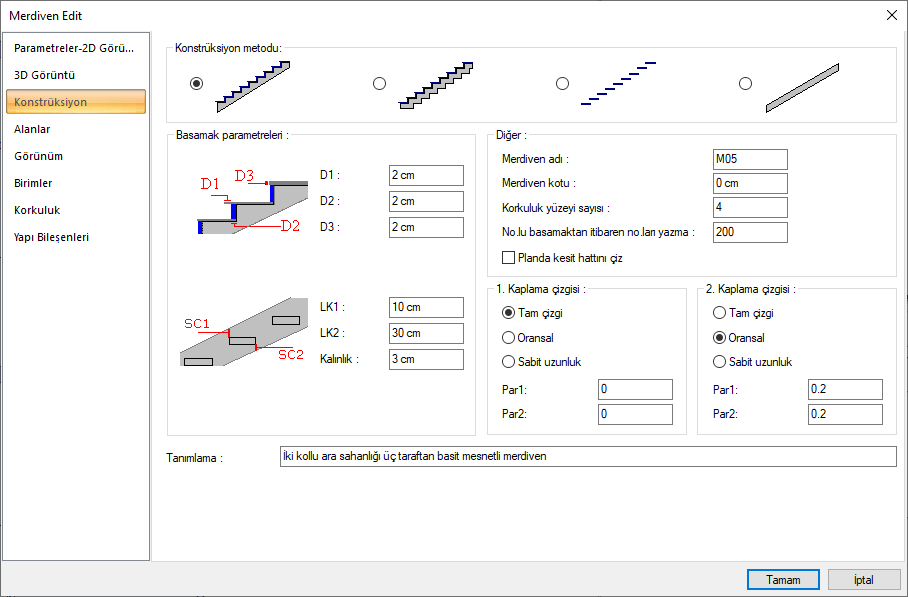 Tamam butonuna tıkladığınız da merdiven girilen değerlere göre şekillenecektir.