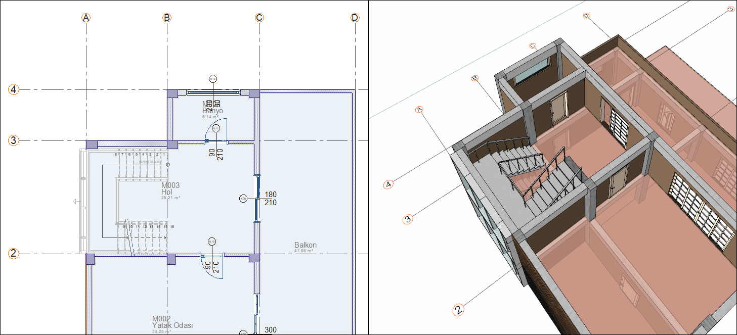 Bu bölümde yapı bilgi modellemesi kapsamında, mimari tasarımda merdivenleri ve korkuluklarını modelleyin.