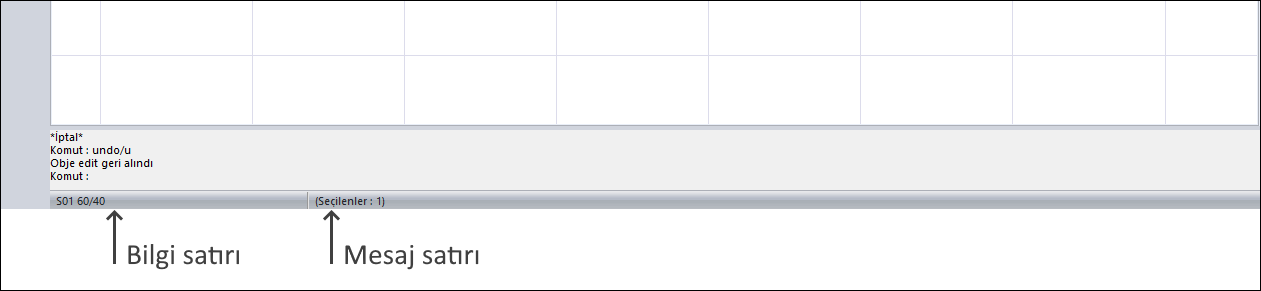 ideCAD’de kullanıcıya, mesaj satırıyla yapılan işlem ile ilgili bilgilendirme eşzamanlı sağlanır. Bilgi satırıyla ise fare imlecinin üzerinde durduğu obje ile ilgili bilgilendirme yapılır.