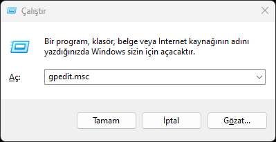 Aç satırına gpedit.msc yazın ve ardından Enter tuşuna basın veya Tamam butnuna tıklayın.