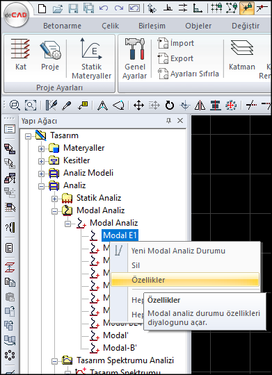 Yapı ağacından Analiz/Modal Analiz/Modal analiz altında listelenen Modal E1,E2,E3,E4 ve varsa Modal BE1, BE2, BE3, B4, Modal' ve Modal B' yüklemelerinde girilebilen “hedeflenen mod sayısı” değerini attırınız ve analiz tekrarlayınız.
