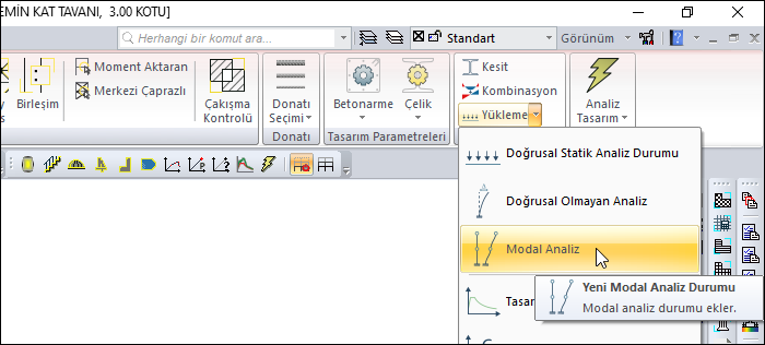 Bununla birlikte mühendis, gerekirse ekstra modal analiz durumunu Modal Analiz komutuyla tanımlayabilir.