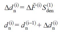 Modal deplasman (yerdeğiştirme) artımı, Δdn(i) aşağıda gösterilen denklem ile bulunur. Δdn(i) terimindeki “n” indisi kaçıncı modda ve ( i ) indisi de kaçıncı adımda işlem yapıldığını ifade etmektedir.