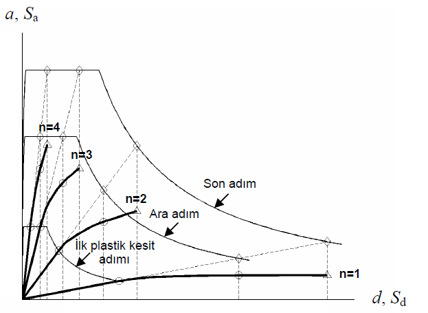Yatay eksende modal yerdeğiştirmelerin, dn(i) ve düşey eksende modal ivmelerin, αn(i) temsil edildiği tipik modal kapasite diyagramları aşağıdaki şekilde gösterilmiştir.