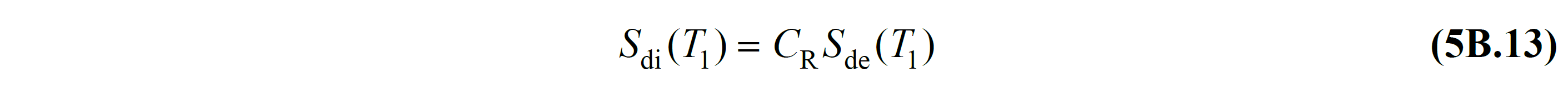 Denklem 5B.16 'daki bağıntılardan yararlanılarak Denklem 5B.14 'te tanımlanan spektral yerdeğiştirme oranı CR , TBDY Denklem 5B.17 'deki gibi ifade edilir.