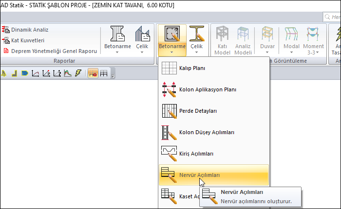 Nervür Açılımları komutu ile projenin nervür açılımları oluşturulur.