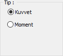 | Tip  Tanımlanan yük momentse moment, kuvvetse kuvvet seçeneğini işaretleyin. Mevcut yükün özelliklerine bakıyorsanız, daha önce girilmiş değeri görürsünüz. |