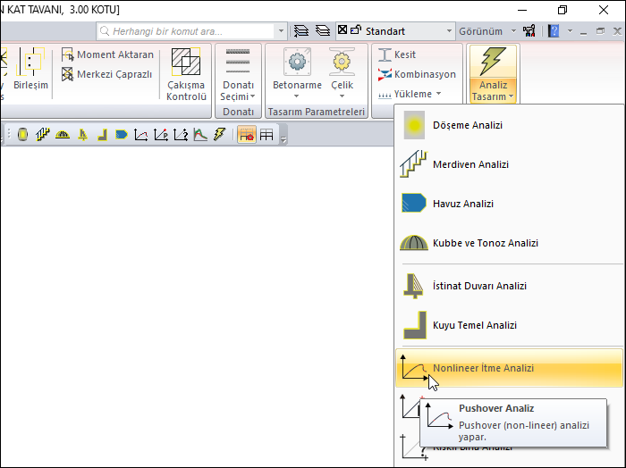 Analiz Tasarım ikonu altında bulunan Nonlineer İtme Analizi ikonunu tıklayınız.