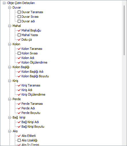 Bazı katmanların kendi içinde alt katmanları bulunur. Katman ayarları diyaloğu Çizim Detayları sekmesinde bu katmanlara ait alt katmanlar listelenmektedir. Çizim detayları sekmesinden çizimde görünmesi istenmeyen alt katmanlar kapatılır.
