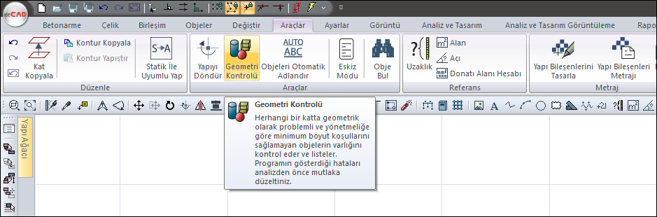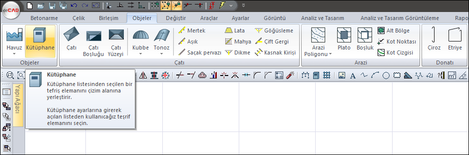 ideCAD’de obje bilgi kutusu fare imlecinin üzerinde durduğu obje özelliklerini, komut bilgi kutusu ise fare imlecinin üzerinde durduğu komutun işlevini gösterir.