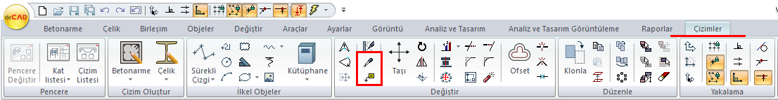 Çizimler menüsü altında bulunan Değiştir bölümünden Obje Ayarlardan Ayarları Al komutunu tıklayanız.