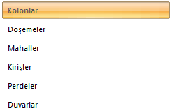 Obje listesi ![]() Listeden objeler seçilerek adlandırma ayarları açılır. |