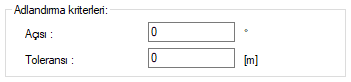Adlandırma kriterleri ![]() Açısı seçeneği ile açılı bir sistemde, açıya uygun adlandırma yapılmak istenirse ilgili açı değeri bu satıra girilir. Örneğin 45 derece akslarla birbirine bağlanmış sistemde, 45 dereceyi dikkate alacak yönde adlandırma yapmak için bu satıra 45 değeri girilir. Toleransı seçeneği ile adlandırma yaparken birbirine yakın objelerden hangisini önce seçeceğini bu satıra girilecek tolerans ile belirler. Bu satırda girilen uzunluk değeri içerisinde kalan en yakın obje önce adlandırılır. |