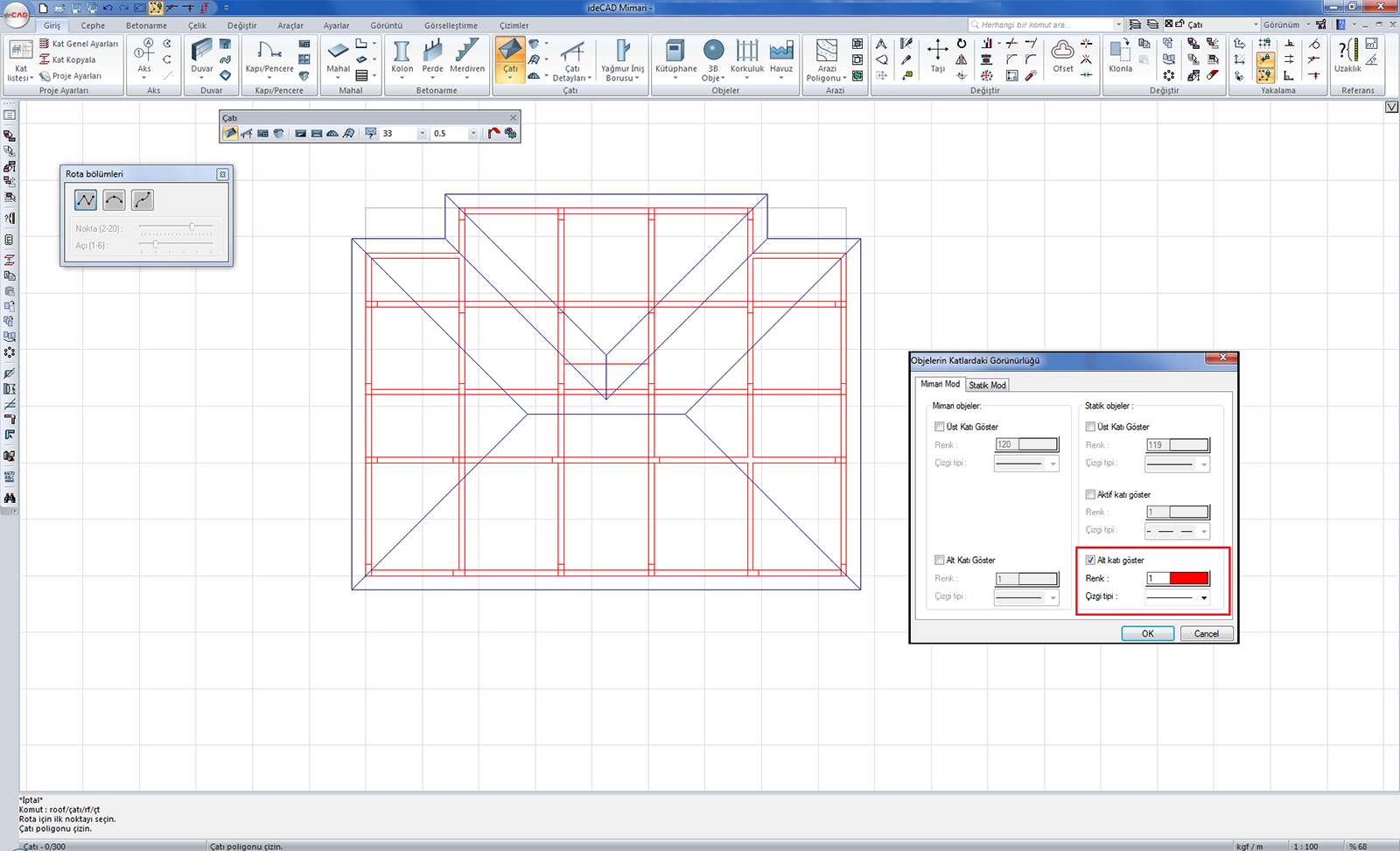 Örneğin; alt katı planındayken alttaki katın duvarlarını görerek çatı çizilir ya da mimari kat planındayken kalıp planı modunu görüp tasarımlara ona göre yön verilir.