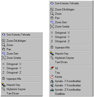 Pencerelerden birisinde bir objenin üstünde farenin sağ tuşu ile tıkladığınız zaman Sekil 2’deki menü ekrana gelecektir.