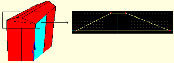 Tasarlanan kasa kenar kalınlığı 6 cm, genişliği 5 cm olacaktır. Bu durumda profilin yüksekliğini 1 cm kısaltarak x=6, y=5 cm boyutlarında bir profil elde ederek, kasa tasarlanan şekilde oluşturulabilir. Bunun için sağ üst köşedeki noktaya tıklayın ve ızgarada bir alt noktaya hareket ettirin. Aynı işlemi sol üst köşedeki nokta içinde yapın.