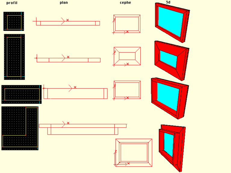 Kasa/kanat kayıtları için tanımlanan elemanlara profil denilmektedir. Aşağıdaki resimde profilin oluşturduğu alanlar, plan ve cephe görüntüsünde yeşil renk ile renklendirilmiştir.