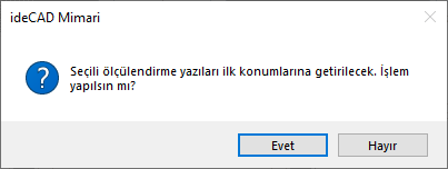 “Seçili ölçülendirme yazıları ilk konumlarına getirilecek. İşlem yapılsın mı?” uyarısını “Evet” butonunu tıklayarak cevaplayın.