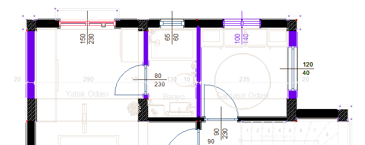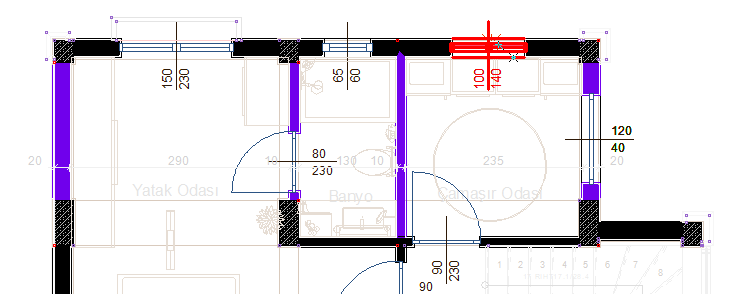 Ölçülendirmeye parça ekle/çıkar komutundayken ölçüye eklenecek ilk pencerenin seçilmesi ![]() |