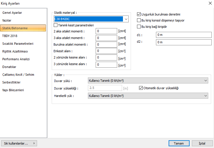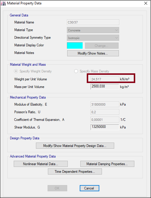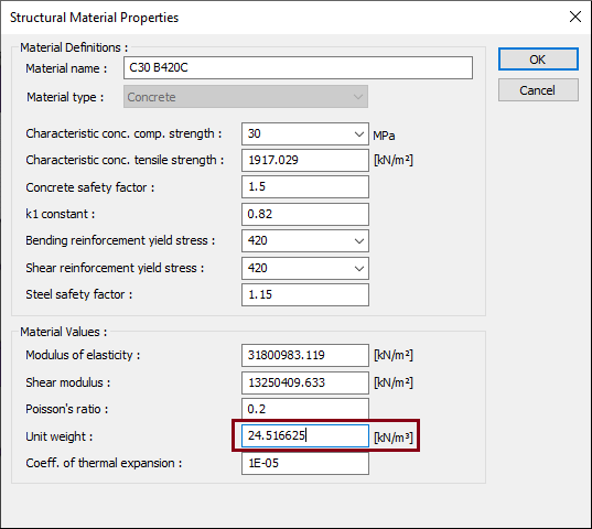 a- Malzeme tanımları için her iki programda birim hacim ağırlığı, beton karakteristik basınç dayanımı aynı girilmelidir.