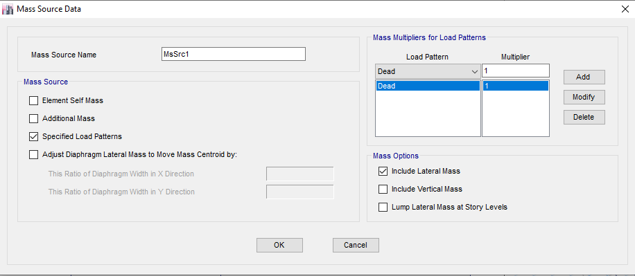 Not: Soldaki arayüz sekmesi ideCAD Statik’e aittir. ETABS’de static correction sekmesi ‘No’ olarak kalmalıdır. Mod sayınız yeterli kütle katılım oranını sağlamaz ise ideCAD Statik yaklaşık bir yöntem ile sağlayacak şekilde eldeki mod sonuçları ile bir uygulamaya gitmemektedir. Ancak ETABS’de bu bölüm ‘Yes’ olarak düzenlenirse yaklaşık bir yöntem ile düzenleme yapılıyor. Detayı için etabs manuali inceleyebilirsiniz.