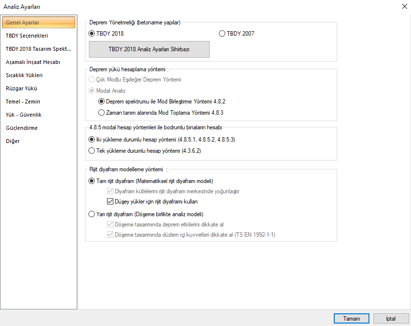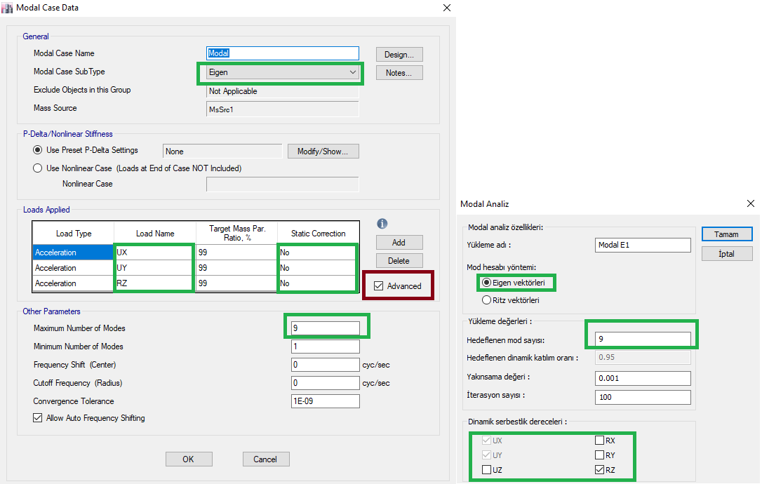 3- Modal Analiz Ayarları ve Deprem Etkileri için Ayarlar