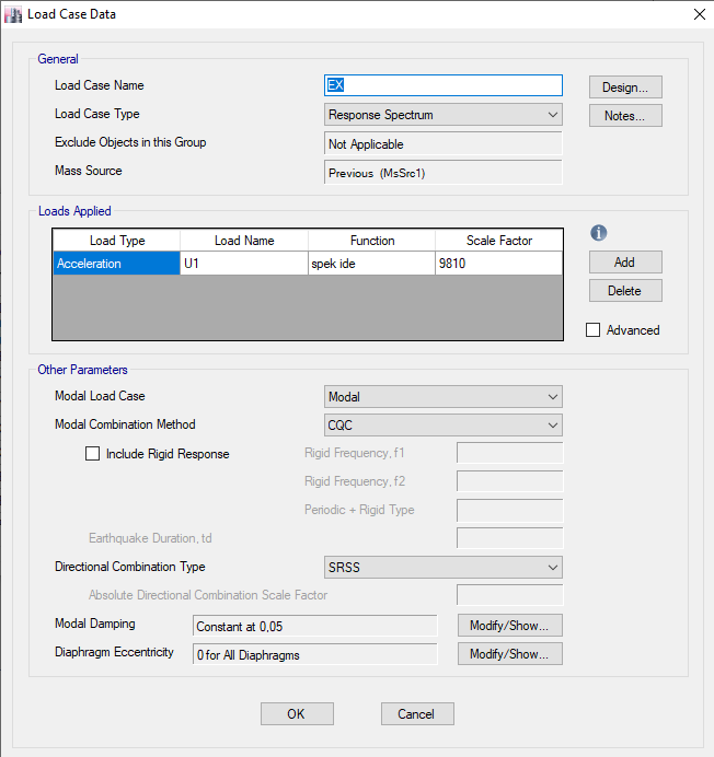 Bu uygulamada amaç her iki programında aynı ivme kaydını kullandığından emin olmaktır. ETABS ile ASCE 7-10 ‘a göre spektrum oluşturup, load case kısmında çarpanı R katsayısına bölmek doğru bir yöntem değildir. Aynı sonuç katiyen elde edilemez. Sebebi ise TBDY 2018 Denklem 4.1 gereği azaltılmış tasarım spektrumunu belirlemede Ra(T)’ nin her zaman R’ye eşit olmamasıdır. Detaylı bilgi için bknz:Yatay Deprem Etkisi Altında Azaltılmış Tasarım İvme Spektrumu (4.4.1)