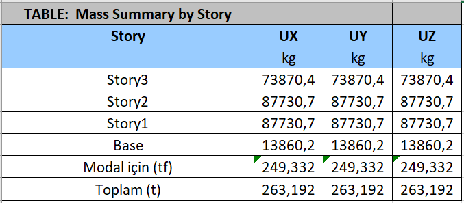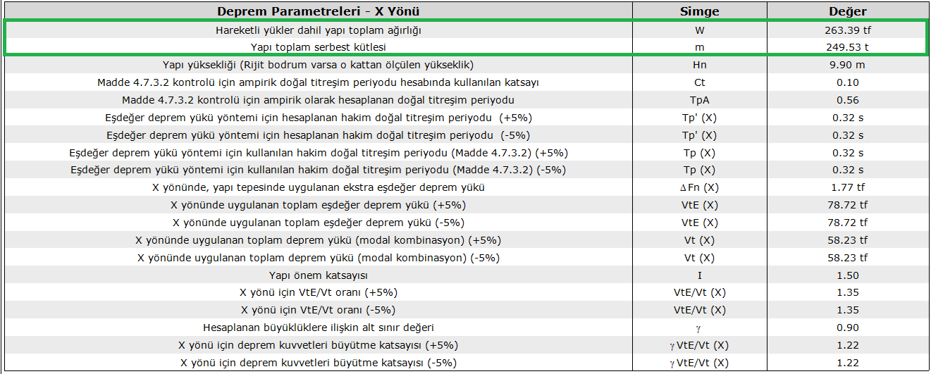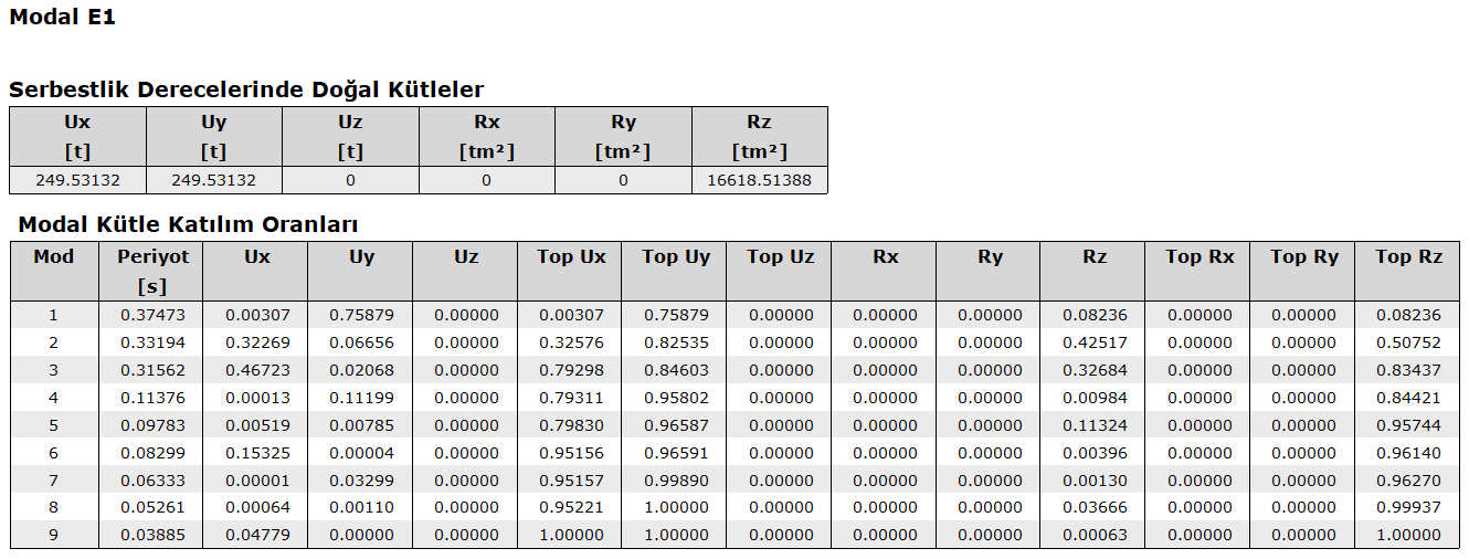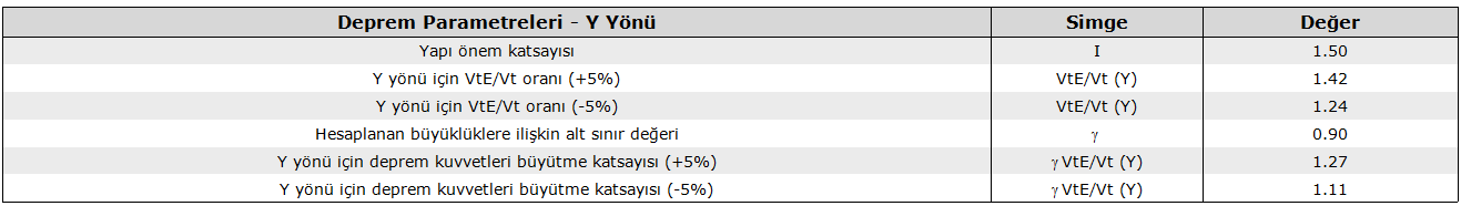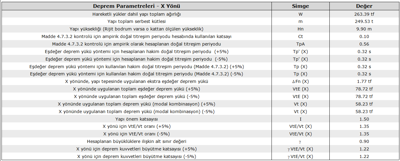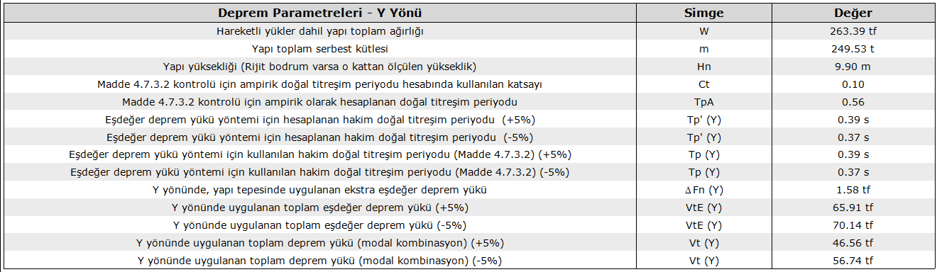 ideCAD Statik Dinamik analiz raporunda yer alan hesapta kullanılan bilgiler ise aşağıda özetlenmiştir.