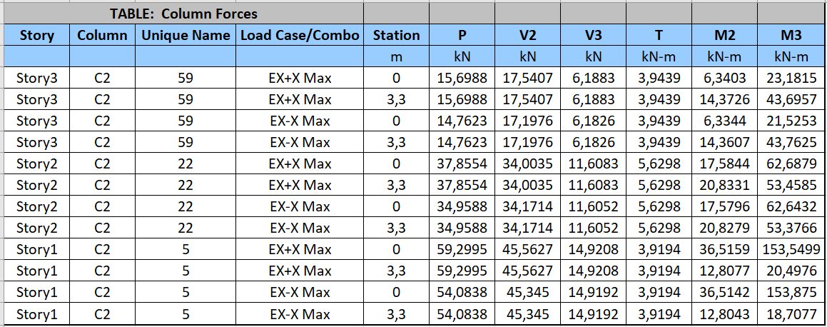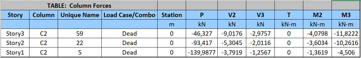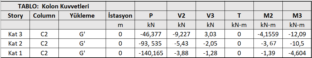 ideCAD modelinde C0013 kolonu ile B016 -B017 kirişi arasında yer alan üst kattan başlayarak sıra ile N2 - N1 - N25 - N48 isimli düğüm noktası değerleri okunmuştur.