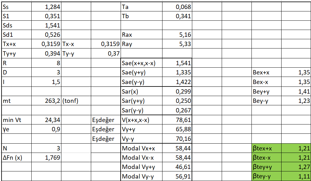 Eşdeğer Büyütme Katsayısı sayfasında TBDY 2018 gereği yapılan bu hesaba ait detaylar mevcuttur. ETABS ile bu katsayı hesabını doğrudan yapmamaktadır, bu nedenle ETABS’den elde edilen modlara ait periyodlar kullanılarak eşdeğer deprem yükü elle belirlenecektir. Eşdeğer deprem yükünün belirlenmesinde kullanılan adımlar için bknz:Eşdeğer Deprem Yükü Yöntemi ve Azaltılmış Tasarım İvme Spektrumu