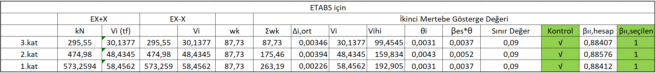 İkinci Mertebe Etkileri bölümünde hesabın felsefesi ve nasıl yapıldığı bulunmaktadır. Bu hesap ETABS ‘den doğrudan elde edilememektedir. Gerekli veriler ETABS’den alınarak elle hesap yapılmaktadır.