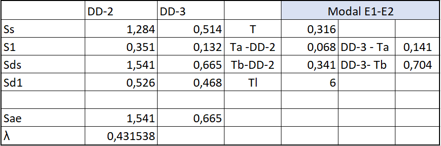 Yapının enlem boylam ve TBDY 2018 için zemin parametreleri, elastik spektrum değerleri ile BYS, BKS, DTS vb. sınıflandırması aşağıdaki görselde belirtilmiştir. Çerçeve elemanları için C30 S420, döşeme için C20 S420 malzeme kullanılmıştır.