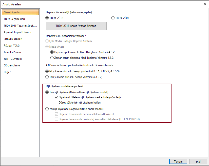 Döşeme için ise tam rijit diyafram kullanılacağı için ETABS ile membrane girişi yapılmalıdır.