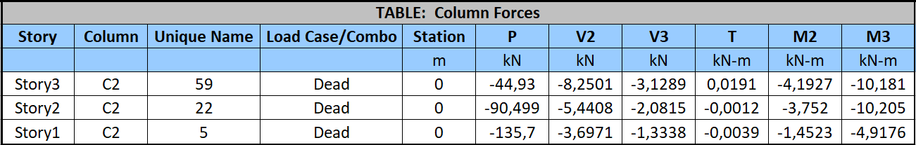 ideCAD modelinde C0013 kolonu ile B016 -B017 kirişi arasında yer alan üst kattan başlayarak sıra ile N2 - N1 - N25 - N48 isimli düğüm noktası değerleri okunmuştur.