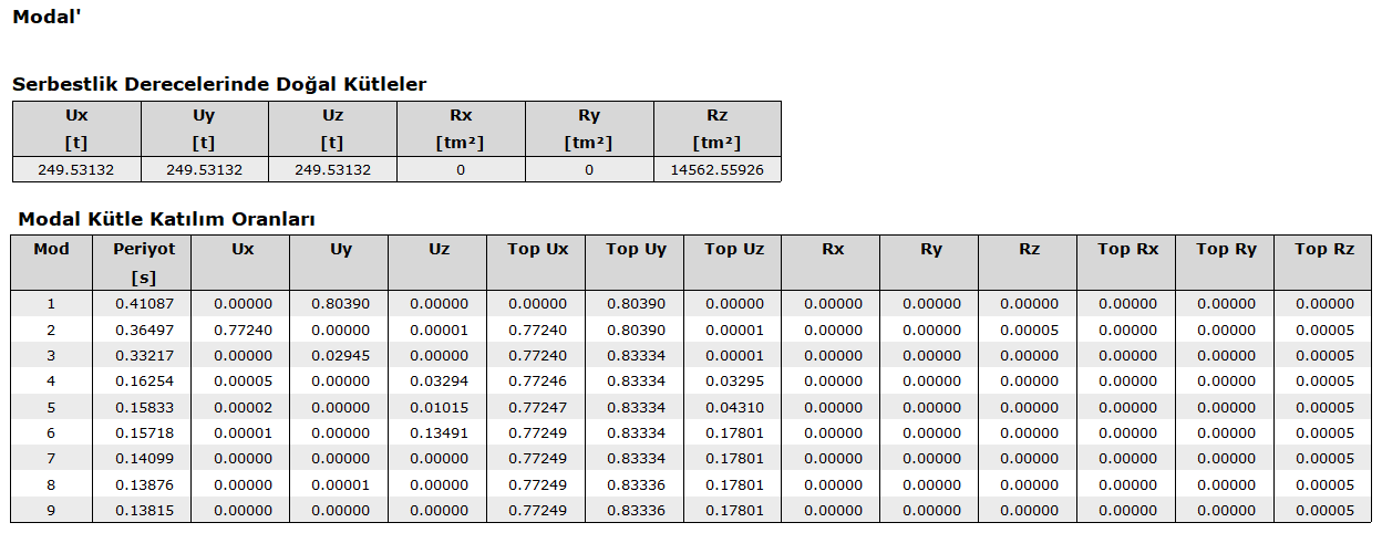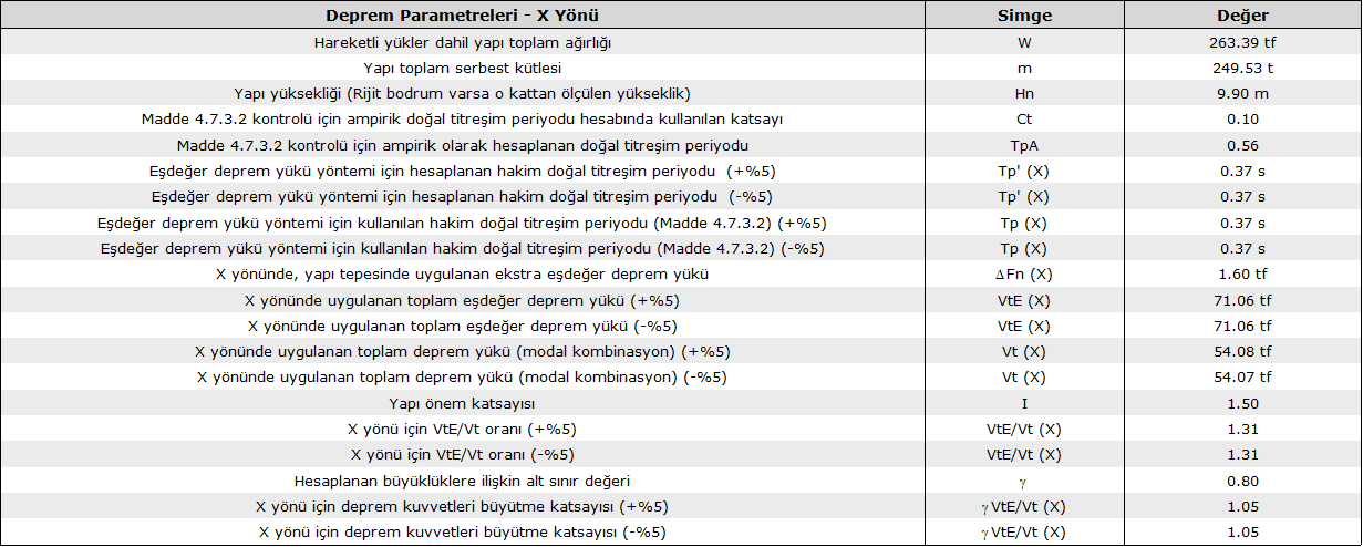 ideCAD Statik Dinamik analiz raporunda yer alan hesapta kullanılan bilgiler ise aşağıda özetlenmiştir.