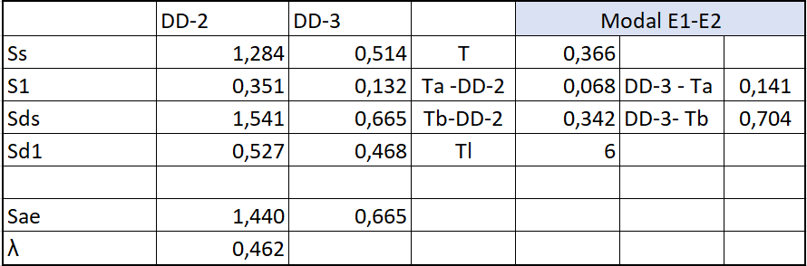 Yapının enlem boylam ve TBDY 2018 için zemin parametreleri, elastik spektrum değerleri ile BYS, BKS, DTS vb. sınıflandırması aşağıdaki görselde belirtilmiştir. Çerçeve elemanları için C30 S420, döşeme için C20 S420 malzeme kullanılmıştır.