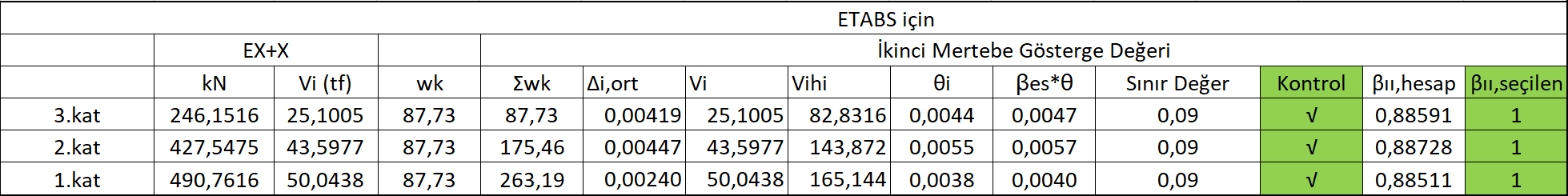 İkinci Mertebe Etkileri bölümünde hesabın felsefesi ve nasıl yapıldığı bulunmaktadır. Bu hesap ETABS ‘dan doğrudan elde edilememektedir. Gerekli veriler ETABS’dan alınarak elle hesap yapılmaktadır.